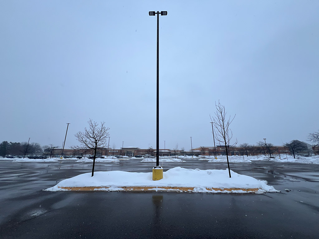 • Dark spots across the parking lot